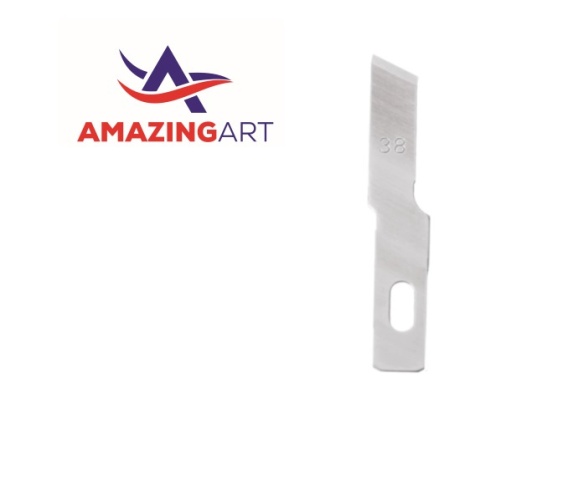 AMAZING ART - WYMIENNE ZAPASOWE OSTRZA #38 (10 sztuk) to zestaw wysokiej jakości ostrzy przeznaczonych do precyzyjnego cięcia i wycinania w różnych materiałach. Idealne dla modelarzy, hobbystów i rzemieślników.